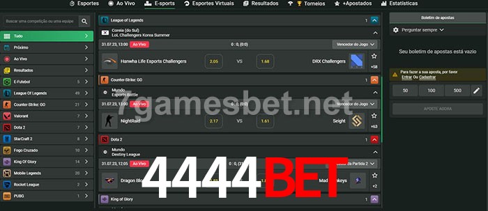 O 4444Bet oferece uma grande seleção de opções de apostas em e-sports com probabilidades competitivas